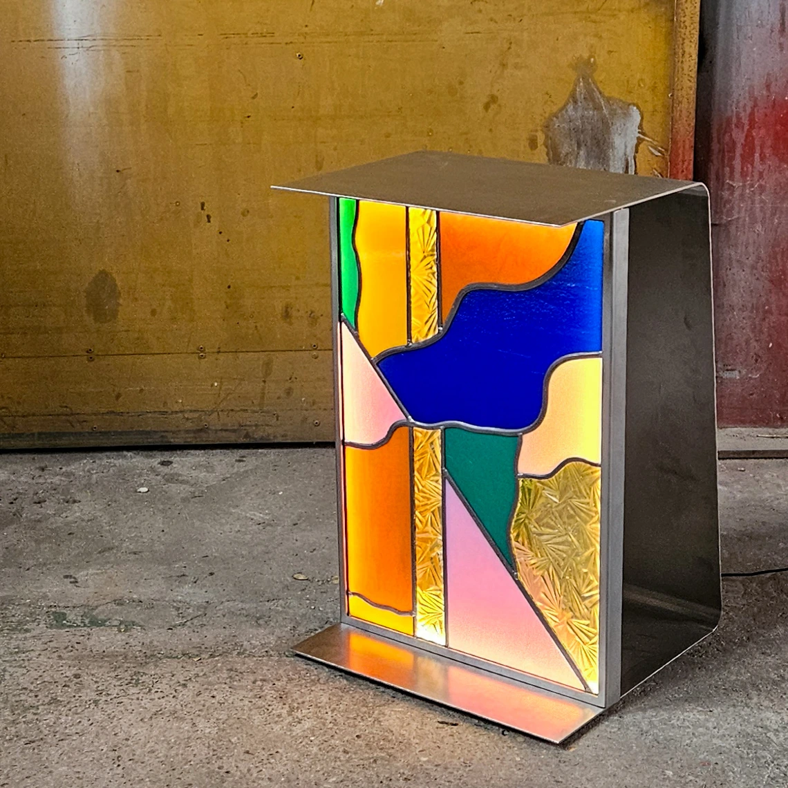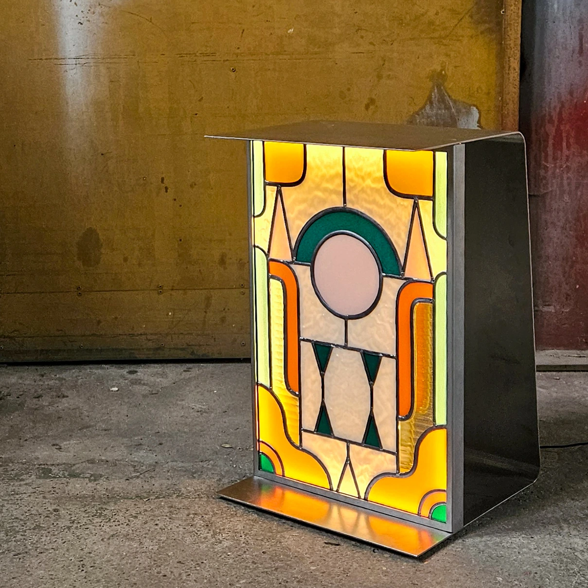Sanderjan moves effortlessly between craft and art,between softness and sharpness.As a stained glass artist, he creates work that plays with light, desire, and layering; sensual, quirky andnever tame.