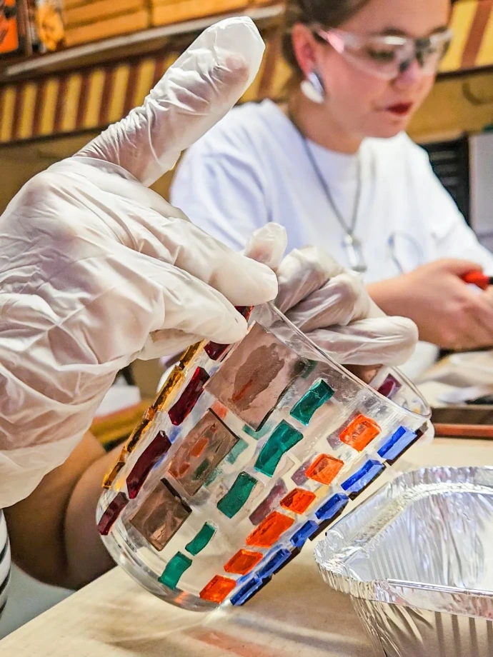 In deze workshop maak je een uniek mozaïek op een glazen windlicht. Je kiest zelf je kleuren, puzzelt je compositie in elkaar en werkt het af met voegsel. Het resultaat? Een sfeervol lichtobject om je zomeravonden of winternachten mee op te vrolijken.