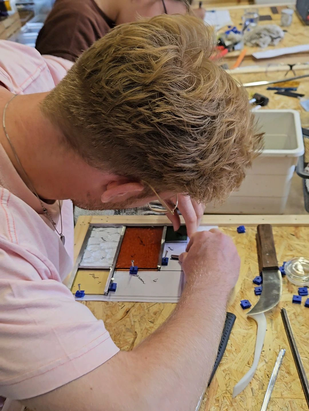 Tijdens deze workshop van ongeveer vier uur leer je onder professionele begeleiding alle basisvaardigheden: glas snijden, lood zetten en solderen. Je kiest uit een reeks bestaande ontwerpen en een uitgebreide selectie glas, van zachte tinten tot uitgesproken texturen. Je maakt een eigen werkje van 20 x 20 cm, met ruimte voor jouw kleurgevoel en stijl.