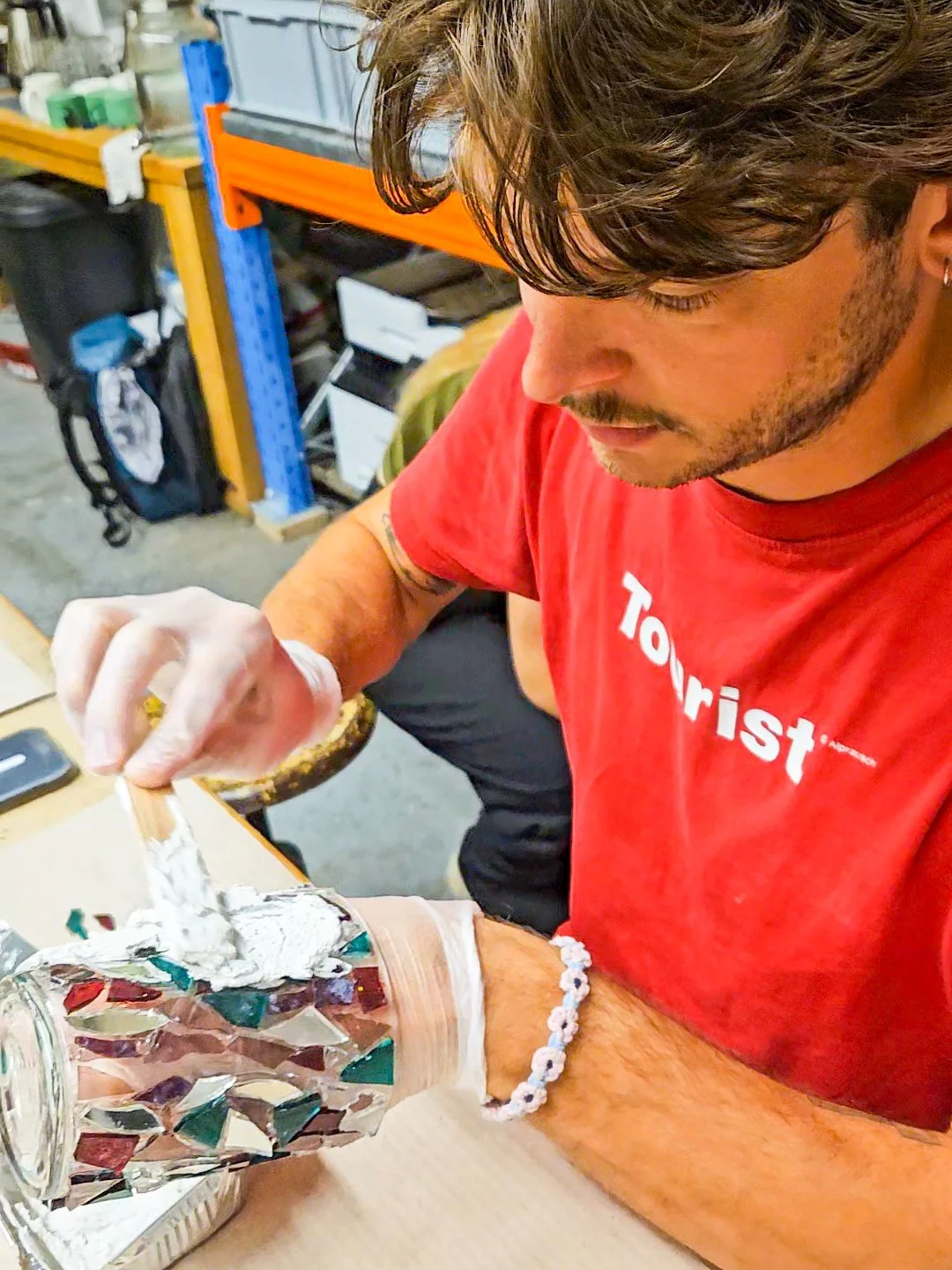 Maak je eigen mozaïek windlicht, met een cava’tje of frisdrankje in een van de mooiste Ateliers van Antwerpen.