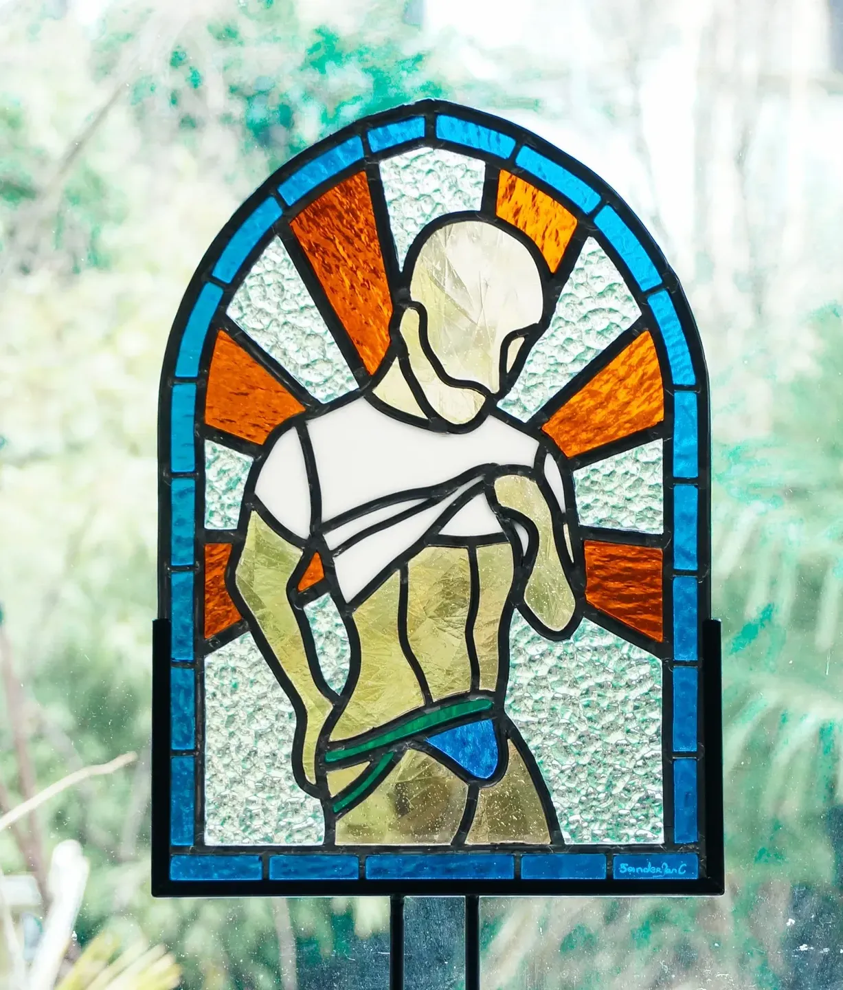 In zijn atelier verbindt Sanderjan eeuwenoud vakmanschap met queer activisme, humor en hedendaagse beeldtaal. "Ik maak (glas)werken die spelen met licht, kleur en identiteit, soms uitgesproken, soms subtiel, maar altijd met karakter."